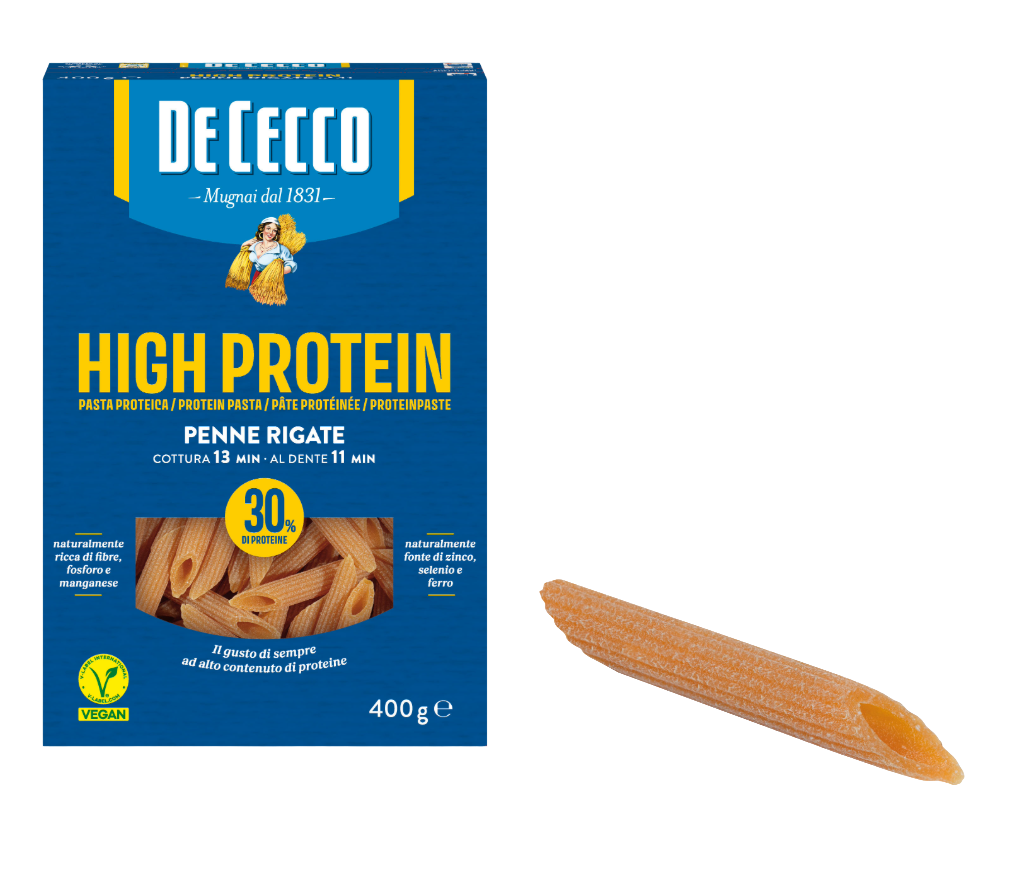 Die exklusive Mischung aus Hartweizengriess, Linsenmehl, Bohnenmehl, Weizengluten und Erbsenmehl verleiht der High Protein Pasta von De Cecco einen feinen Geschmack und wertvolle Proteine und essentielle Mikronährstoffe.